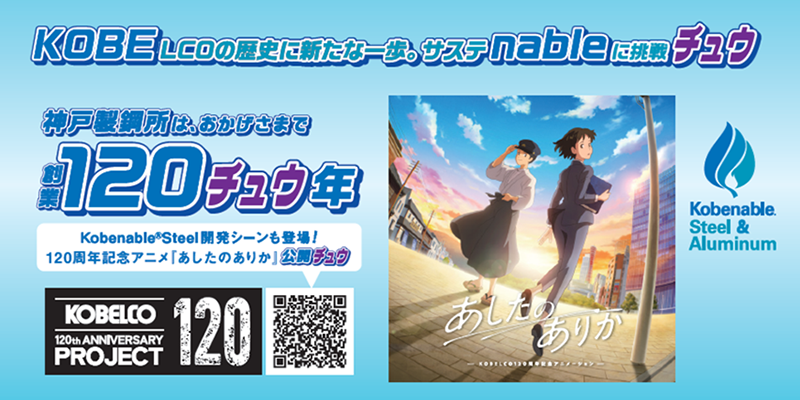 当社は2025年9月1日に創業120周年を迎えました。創業120周年プロジェクトの一環として、KOBELCOが歩んできた苦難とそれを乗り越えた挑戦の軌跡を次の時代へ伝えていくために制作したアニメーションが『あしたのありか』です。アニメの中では、歴史の中の挑戦の一つとして、“Kobenable® Steel”の開発に向けた取組みも描かれます。