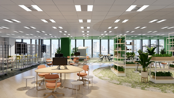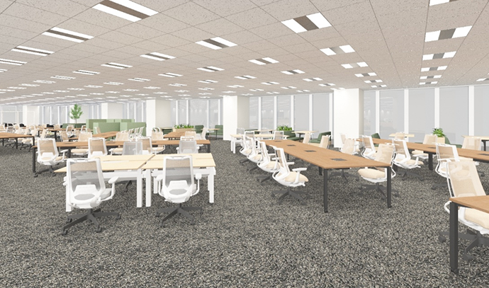 KOBELCOの強みである「総合力」と「多様な人材」による個人・組織の成果最大化のためには、部門や組織の枠を超えた更なる連携とグループ一体化による新たな価値創造が不可欠です。こうした考えのもと、新東京本社では新たにABW&完全フリーアドレスを導入します。急速に変化する時代の中で、個人・組織が本来持つ力を最大限に発揮するためには「働き方」そのもののアップデートが必要であり、本導入はこうした変化に挑む取組みであると同時に「変革のスピードを加速させる仕組み」です。業務内容や目的に応じて1人ひとりが最も効果的な働き方を選択することが、成果の最大化に繋がると考えています。